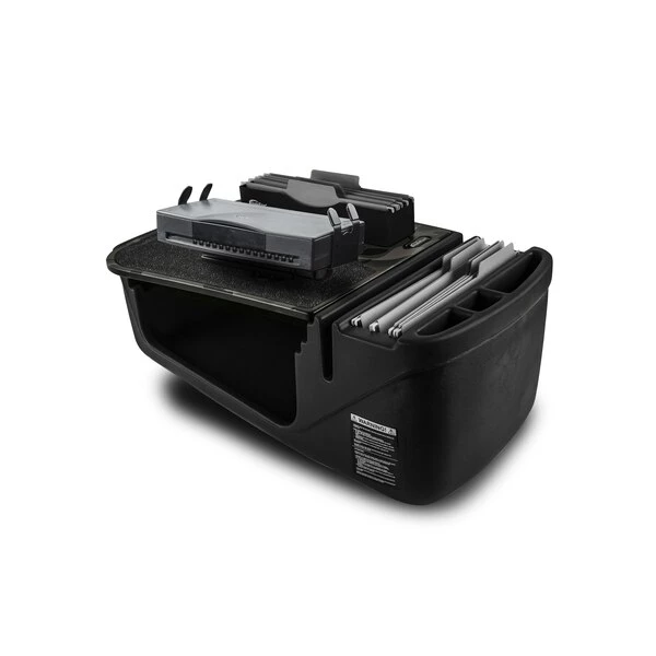 Even with all the technology available, paper files, and traditional writing is still a necessary evil. Our Grip Master car desk is ideal for this type of work. The top surface of this desk is covered with a rubber non-skid material; this ensures that a laptop, briefcase, or cell phone will keep from sliding while the vehicle is in motion. This Grip Master features a pull-out writing surface with built-in clipboard, which provides a convenient area for doing paperwork and writing. The large storage area underneath is great for office tools and accessories and also for keeping a laptop out of sight. Additional storage compartments hold small supplies such as pens, maps, etc. This desk model is ideal for those needing to keep mobile equipment accessible during the day as well as needing a convenient area for writing.