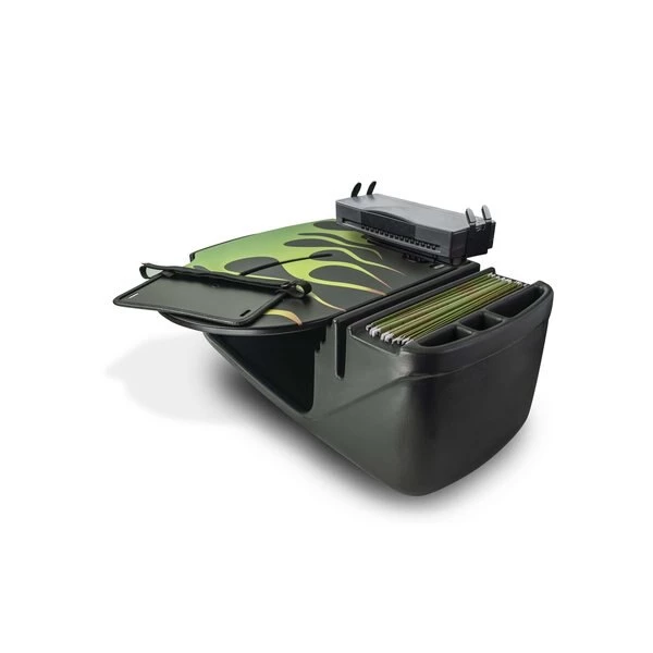 The classic hot rod flames have been around since the 1930’s and popularized over the years in many movies and pop culture. Now you can add some hot rod flames to your wheels! AutoExec has released three unique hot rod flames styles to decorate our vehicle desks. Choose from Hot Rod Orange, Blue Steel and Candy Apple Green. Add some flare in your front passenger seat while you work in your vehicle. It’s a faster mobile office! AutoExec has truly helped put the laptop in a position that is easy to use and type. The RoadMaster is one of the more ergonomic solutions available today. With the printer stand equipped on this desk, you don’t have to wait to get to your home or office to print your documents. Just place your mobile printer in the stand and start printing. The 21" wide top has an adjustable laptop plate so the laptop can be moved to a comfortable position for typing. The laptop plate extends past the edge of the desk by another 3 inches making it 24" of overall reach from the far edge of the desk. Along with the comfort features of this product, you can enjoy hanging file space, and a hidden storage area. This will help keep valuables out of sight and make sure you are organized. Secure the desk with the seat belt in your vehicle. . Fits most cars, smaller SUV’s, and Mini-Vans.