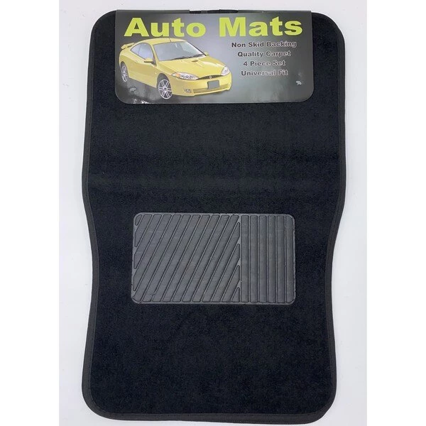Car Dealer Depot 4 Pc. Carpet Mat Set W/ Heel Pad - Black