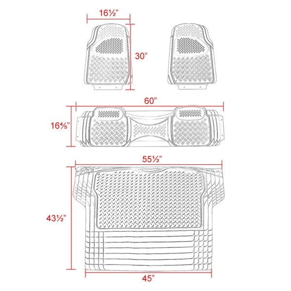 Spec-D Tuning Pvc 3D Print Floor Mat Grey 3 Pieces + Trunk Piece